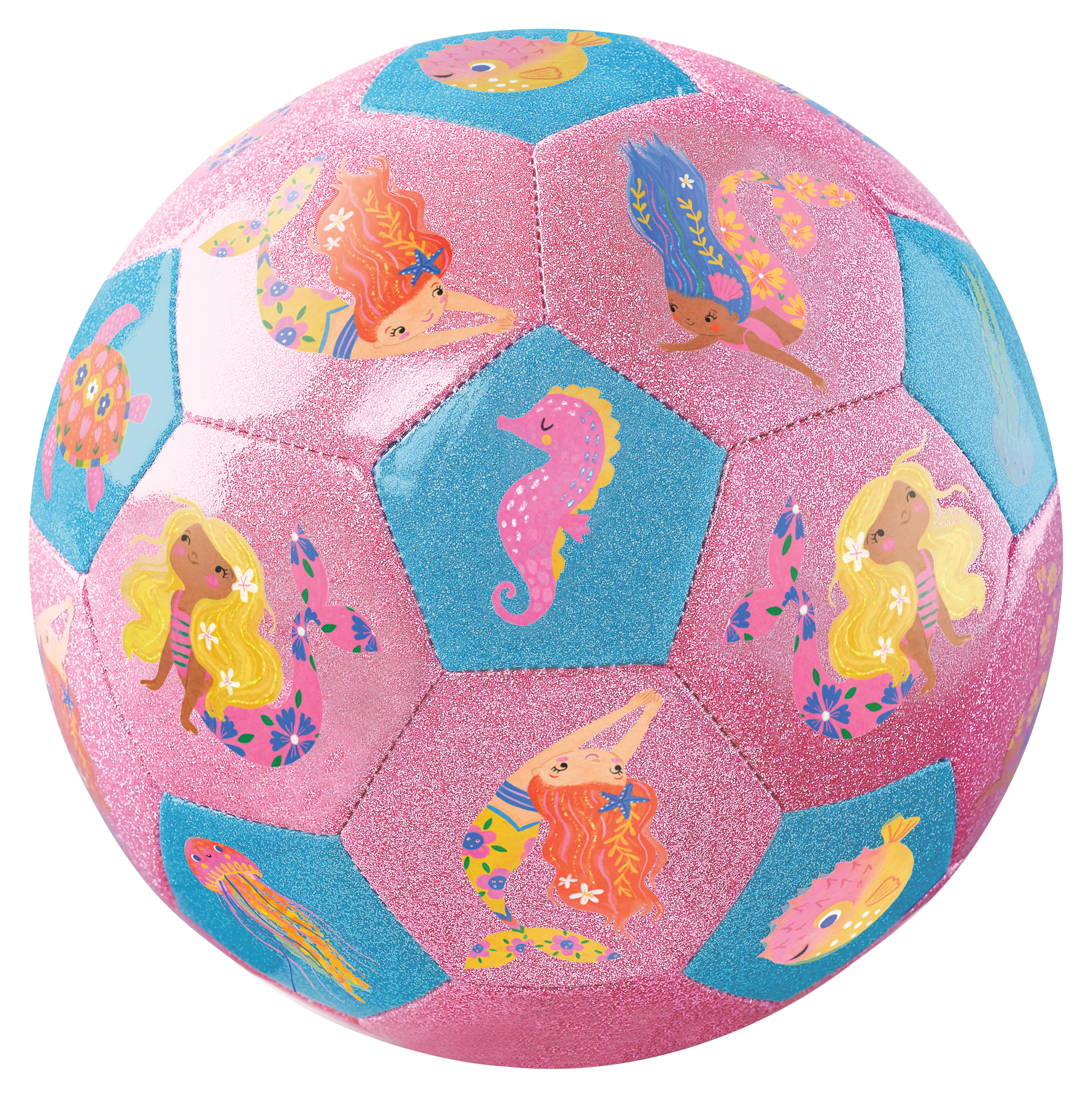 Glittery Fun!Our Crocodile Creek Size 3 glitter soccer ball is the perfect gift for young children learning to play soccer! Size 3 is considered to be the introductory size for organized soccer activities and will help teach your child fundamental skills and encourage them to be involved in team sports. Our soccer balls are made from high-quality synthetic rubber with a rubber bladder, are 7" in diameter and are the perfect size for kids ages 4-8. Constructed with heavy-duty, synthetic leather and a sturdy rubber bladder, our soccer balls hold up to indoor and outdoor play.