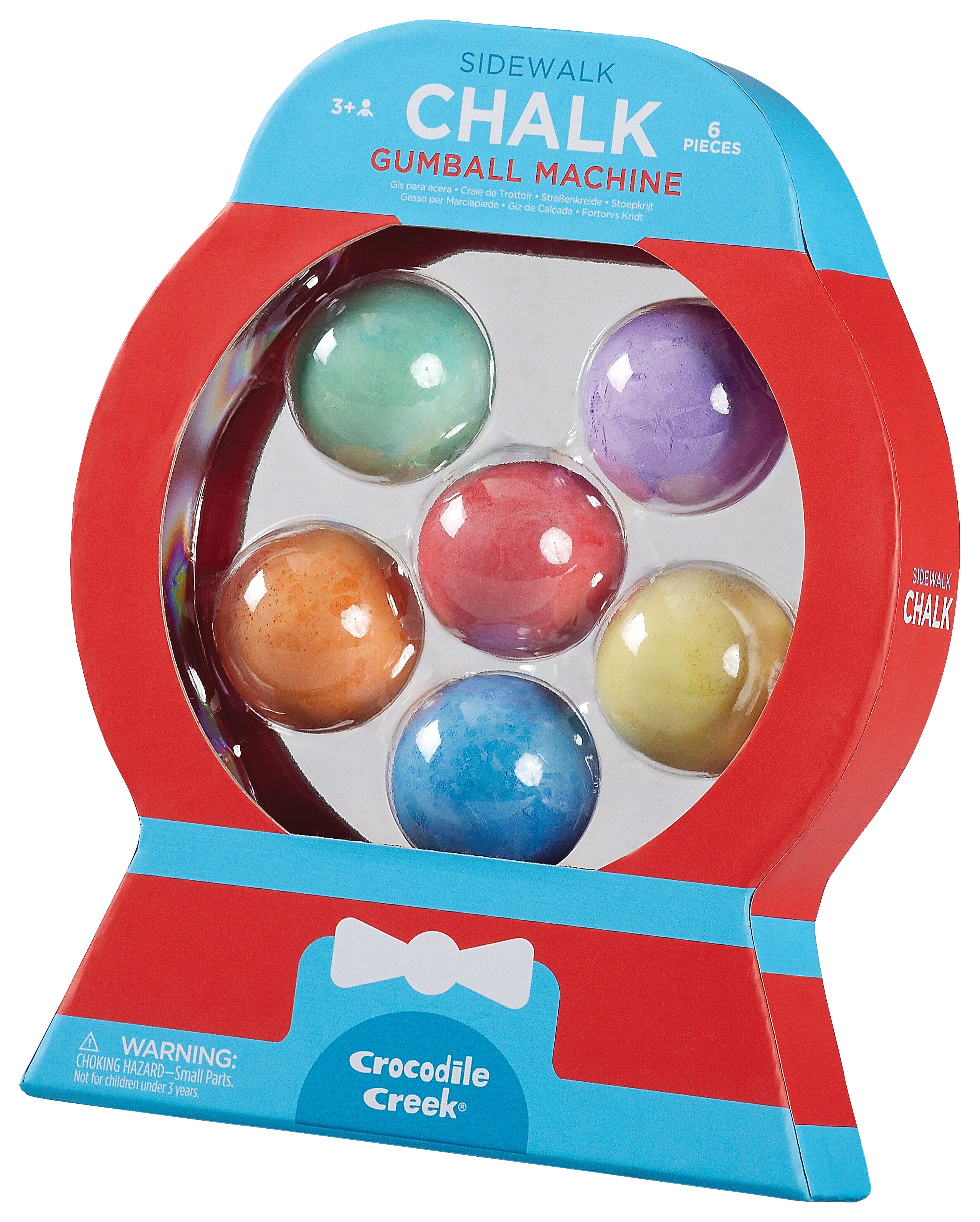 Brighten up sidewalks and driveways with our Gumball Machine Sidewalk Chalk! This set of five gumball-shaped chalk pieces encourages colorful creativity and outdoor play for children ages 3 and up. Each piece is chunky and easy to grip, perfect for little hands to draw and doodle.
